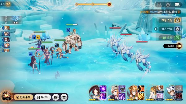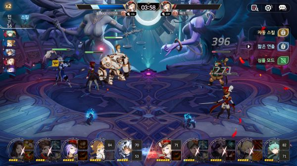 전투는 자동으로 이뤄진다. 실시간 조작보다는 전투 전 편성 전략이 더 중요하다. 어떤 영웅을 조합하느냐, 어떤 스킬 우선순위를 부여하느냐에 따라 전투 구도가 달라진다.
