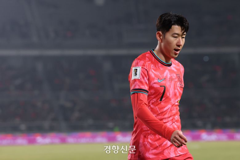 지난 3월20일 경기 고양시 고양종합운동장에서 열린 2026 FIFA 북중미 월드컵 3차 예선 오만과의 경기에서 손흥민이 아쉬운 표정을 짓고 있다. 정효진 기자