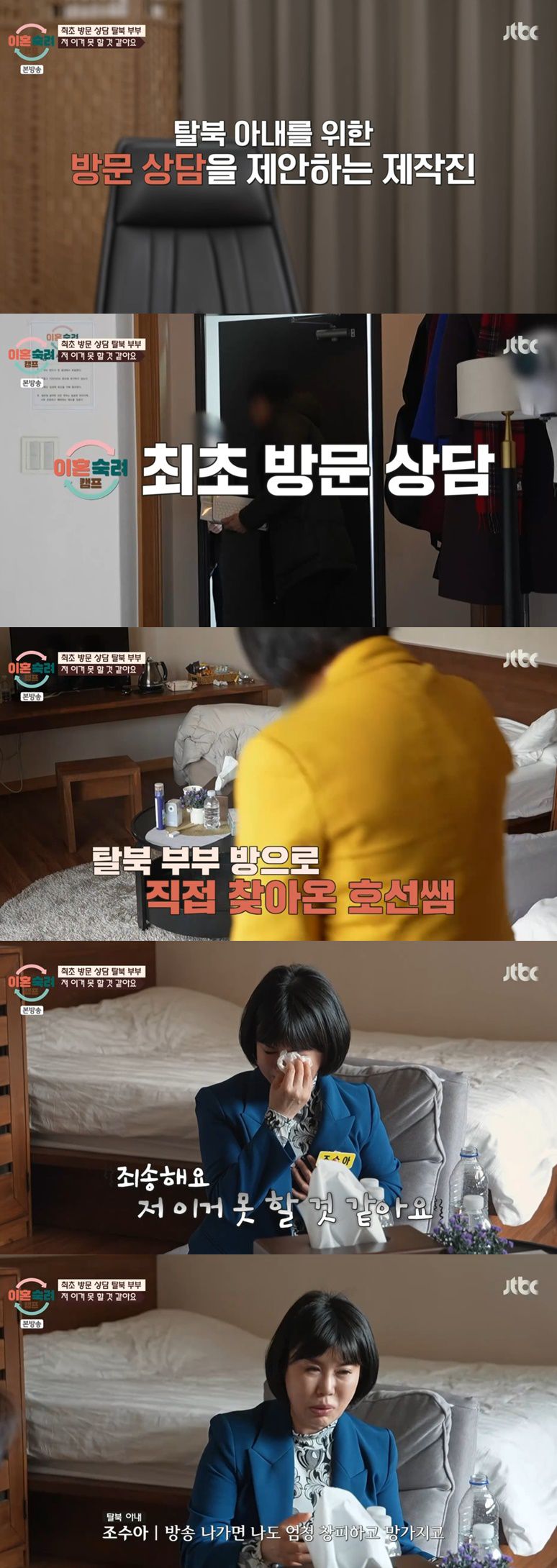 탈북 아내는 이호선이 등장하자 "죄송하다. 저 이거 못할 거 같다"며 눈물을 흘렸다.