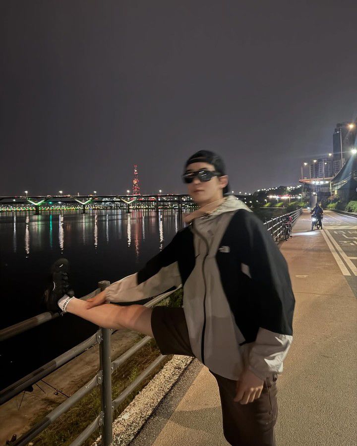 공개된 사진에서 그는 블랙과 그레이가 혼합된 노스페이스 바람막이 점퍼에 브라운 쇼츠, 블랙 러닝화를 매치해 기능성과 스타일을 모두 갖춘 아웃도어 패션을 선보였다. 여기에 캡 모자와 선글라스를 더해 러닝 아이템으로 실용성을 높였다.