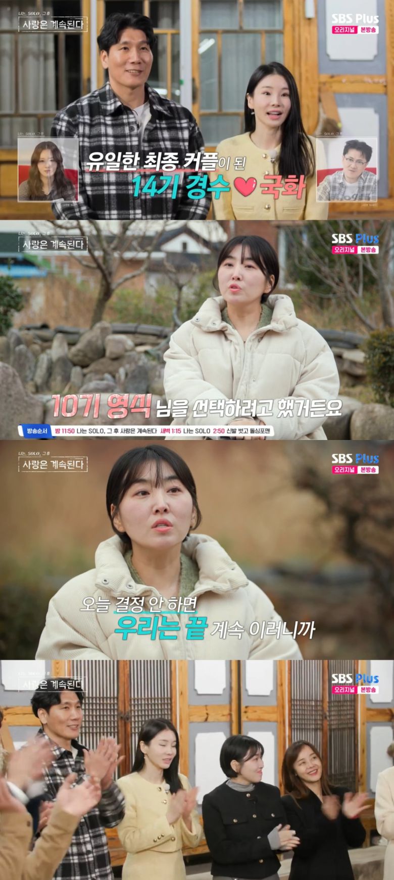 국화 역시 “올해 가장 큰 선물을 3박 4일 동안 받은 거 같다. 알콩달콩한 연애를 이제는 못할 거라고 생각했는데 감정을 다시 느끼게 해준 그분께 감사하다”라며 14기 경수를 최종 선택했다.