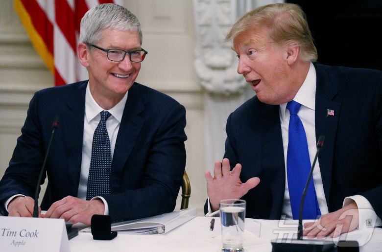 트럼프 대통령은 "나는 팀 쿡(애플 최고경영자)과 약간 문제가 있었다"며 "팀, 우리는 당신을 정말 잘 대해줬고, 중국에 지은 수많은 공장들도 수년간 참고 봐줬다"고 말했다.