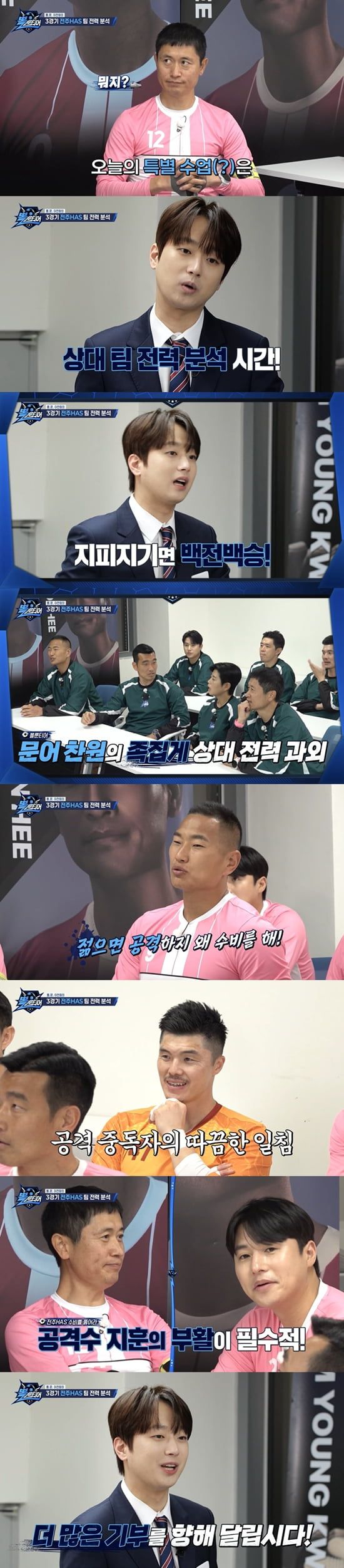 특히 이찬원은 3경기 상대팀 전주 HAS에 대해 "전원 20대고, 수비에 대한 자부심이 굉장하다"라고 날카로운 분석을 전했다. 그러자 정대세는 "젊으면 공격하지 왜 수비를 해? 한참 호르몬이 나올 때인데!"라며 이해할 수 없다는 반응을 보였다. 이에 이찬원은 껄껄 웃으며 "화났어, 화났어"라고 반응해 웃음을 더했다. '공격 중독자' 모드를 장착한 정대세는 충청, 전라 연합과의 경기에서 '불도저 본능'을 폭발시키며 승부차기까지 총 5골을 몰아넣었다.