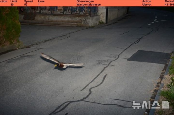 [서울=뉴시스]장가린 인턴 기자 = 스위스 쾨니츠에서 7년 전 과속 단속 카메라에 찍힌 오리가 같은 장소에서 같은 속도로 다시 포착되는 놀라운 일이 벌어졌다.