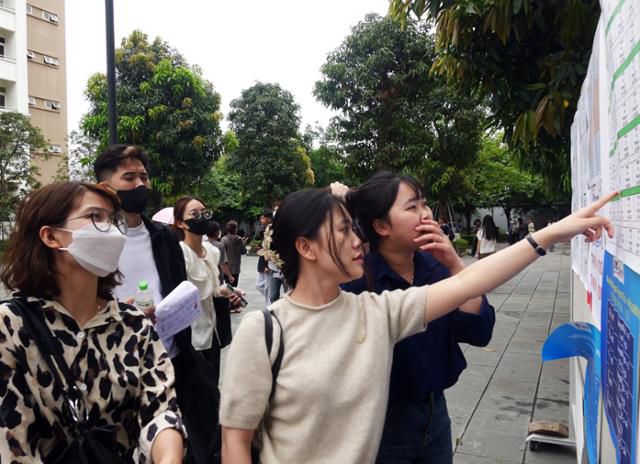 11일 베트남 하노이 다이남대 한국어능력시험(TOPIK·토픽) 시험장에서 응시자들이 고사장을 확인하고 있다. 하노이=허경주 특파원