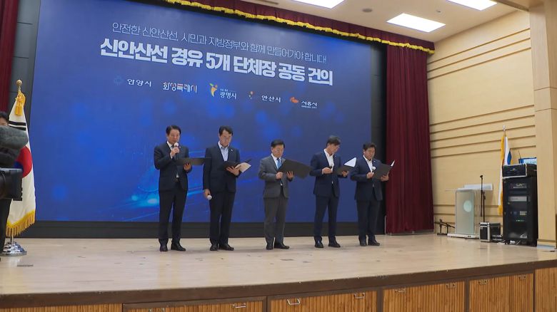 광명시와 안양시, 시흥시, 화성시, 안산시 등 5개 지방자치단체장은 어제(15일) 오전 광명시청 중회의실에서 '신안산선 광역철도 안전 시공을 위한 지자체 공동 대응 건의문'에 서명했습니다.