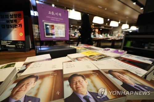 (서울=연합뉴스) 송광호 기자 = 더불어민주당 이재명 대선 후보가 쓴 '결국 국민이 합니다'가 대선을 앞두고 서점가에서 강세를 보이고 있다. 베스트셀러 순위에서 2주 연속 1위를 차지했다.