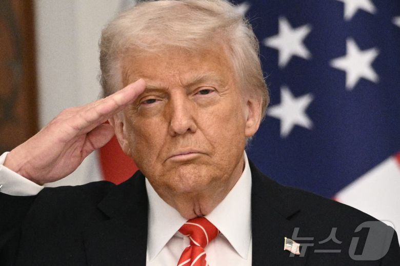 도널드 트럼프 미국 대통령이 지난 14일(현지시간) 카타르 도하의 루사일 궁전에서 열린 국빈 만찬에 앞서 미국 국가가 연주되는 동안 경례를 하고 있다. 2025.05.14 ⓒ AFP=뉴스1 ⓒ News1 류정민 특파원 |