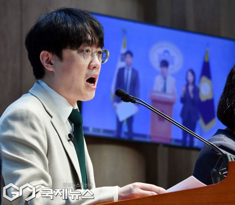 (서울=국제뉴스) 더불어민주당 전 권리당원인 백광현 씨가 16일 오전 서울 여의도 국회 소통관에서 이재명 대통령 후보의 성남시장 재임 시절, 검찰의 압수수색 직전 은폐된 것으로 알려진 컴퓨터 하드디스크에 대한 1차 포렌식 작업 공개 기자회견을 하고 있다./사진=이용우 기자