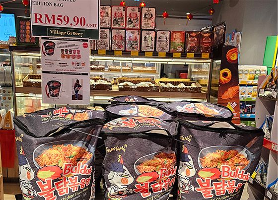 삼양식품의 '불닭볶음면'이 말레이시아 쿠알라룸푸르의 한 마트에 진열돼있는 모습. 쿠알라룸푸르=김도년 기자 |