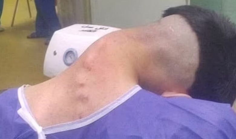 이란 이스파한의 알자흐라 대학병원 의료진이 공개한 남성의 사진을 보면 목이 심하게 꺾여 귀가 어깨에 닿아 있는 모습이다.