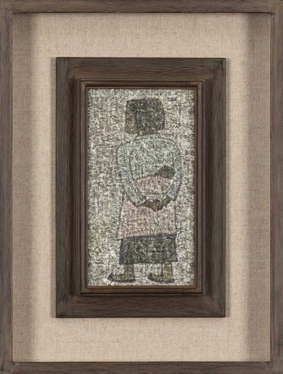 박수근, 아기 업은 소녀(1964), 메소나이트에 유채, 29.3×16.1㎝  케이옥션 제공