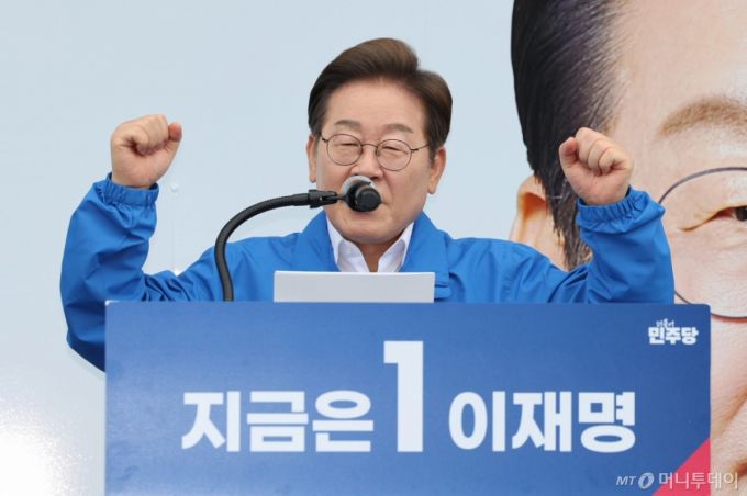 [익산=뉴시스] 조성우 기자 = 이재명 더불어민주당 대선후보가 16일 전북 익산시 익산역 동부광장에서 열린 유세에서 연설하고 있다. (공동취재) 2025.05.16. photo@newsis.com /사진=