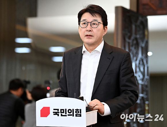 신동욱 국민의힘 중앙선거대책위원회 수석대변인이 지난해 12월 6일 서울 여의도 국회에서 열린 의원총회 관련 브리핑을 하고 있다. [사진=곽영래 기자]