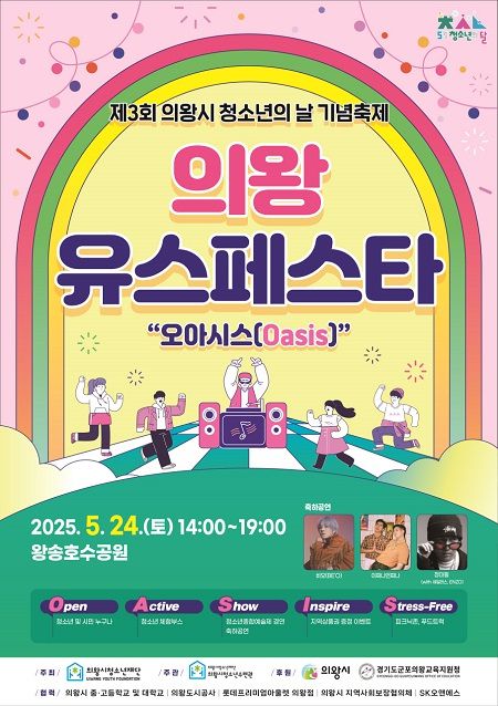 경기 의왕시청소년재단은 지역 청소년들의 축제인 '제3회 의왕 Youth Festa(유스 페스타-오아시스(Oasis)'가 오는 24일 왕송호수공원에서 펼쳐진다고 16일 밝혔다.