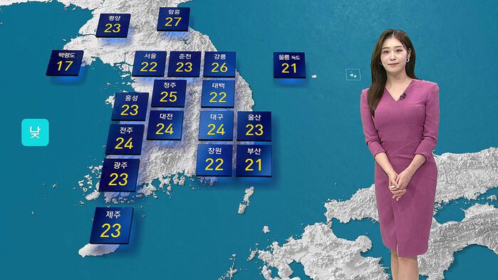 지역별 낮 기온 살펴보시면 서울의 기온 22도, 대구는 24도까지 오르겠습니다.