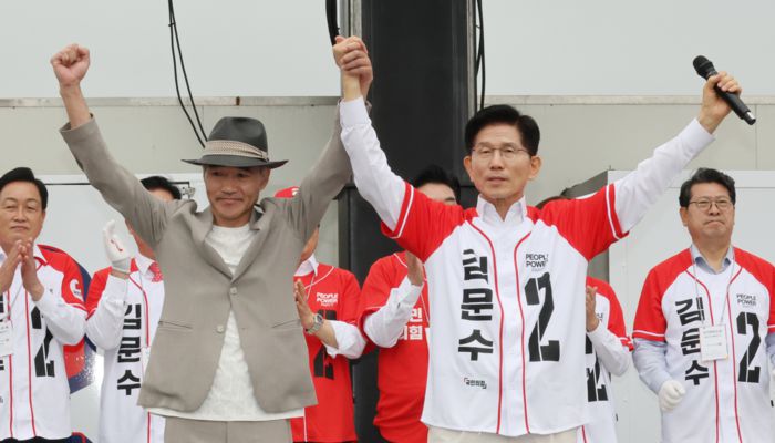 16일 오전 수원 지동시장 유세 현장에 김 후보와 함께 등장한 이 씨는 “민주당은 국가 공무원을 간첩으로 만든 범죄 집단”이라며 “김문수 후보를 대통령으로 만들어서 우리나라를 정직하게 이끌게 해달라”고 말했다.
