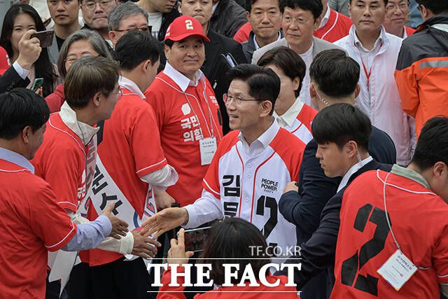 동탄센트럴파크에서 지지호소하는 김문수 후보 [TF사진관]