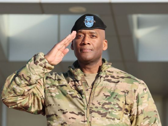 제이비어 브런슨 한미연합사령관이 지난 1월 9일 서울 용산 국방부 연병장에서 열린 한미연합사령관 환영 의장 행사에서 경례하고 있다. 그는 15일(현지시간) 주한미군의 존재가 인도태평양 지역 안보에서 갖는 전략적 함의를 강조했다. 연합뉴스