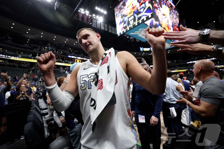 덴버 너기츠의 센터 니콜라 요키치가 16일(한국시간) 열린 오클라호마시티 선더와의 2024-25 NBA 서부 콘퍼런스 플레이오프 2라운드 6차전에서 29점 14리바운드 8어시스트로 맹활약하며 팀 승리를 이끌었다. ⓒ AFP=뉴스1