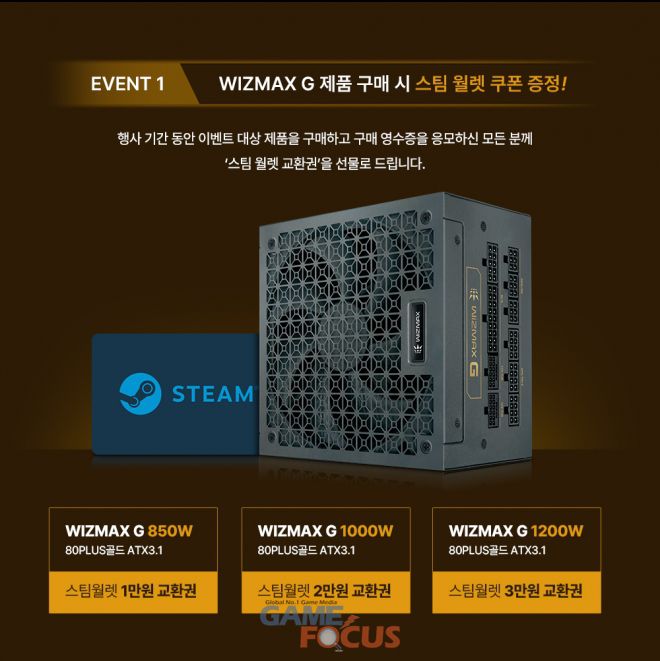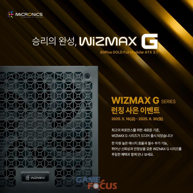 마이크로닉스는 WIZMAX G 시리즈 출시를 기념해 2025년 5월 16일부터 6월 30일까지 특별 프로모션을 진행한다. 행사 기간 동안 제품을 구매한 고객에게는 출력 용량에 따라 스팀 월렛 교환권이 제공된다. 850W 모델엔 1만 원, 1000W 모델엔 2만 원 상당의 스팀 월렛 교환권을 제공한다.
