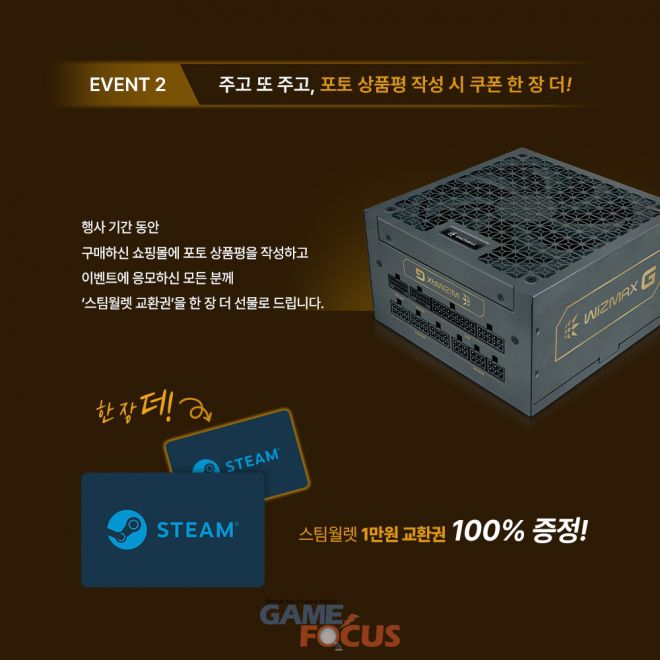 여기에 더해, 포토 상품평을 작성한 고객은 스팀 월렛 1만 원 교환권을 한 장 추가로 제공해, 최대 2장의 혜택을 받을 수 있다.