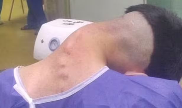 영국 데일리메일에 따르면, 이란 알자흐라 대학병원 의료진은 현지시간 14일 목이 구부러진 23세 남성의 사진을 공개하면서 목 근육이 머리를 지탱할 수 없게 된 상태였다고 설명했습니다.