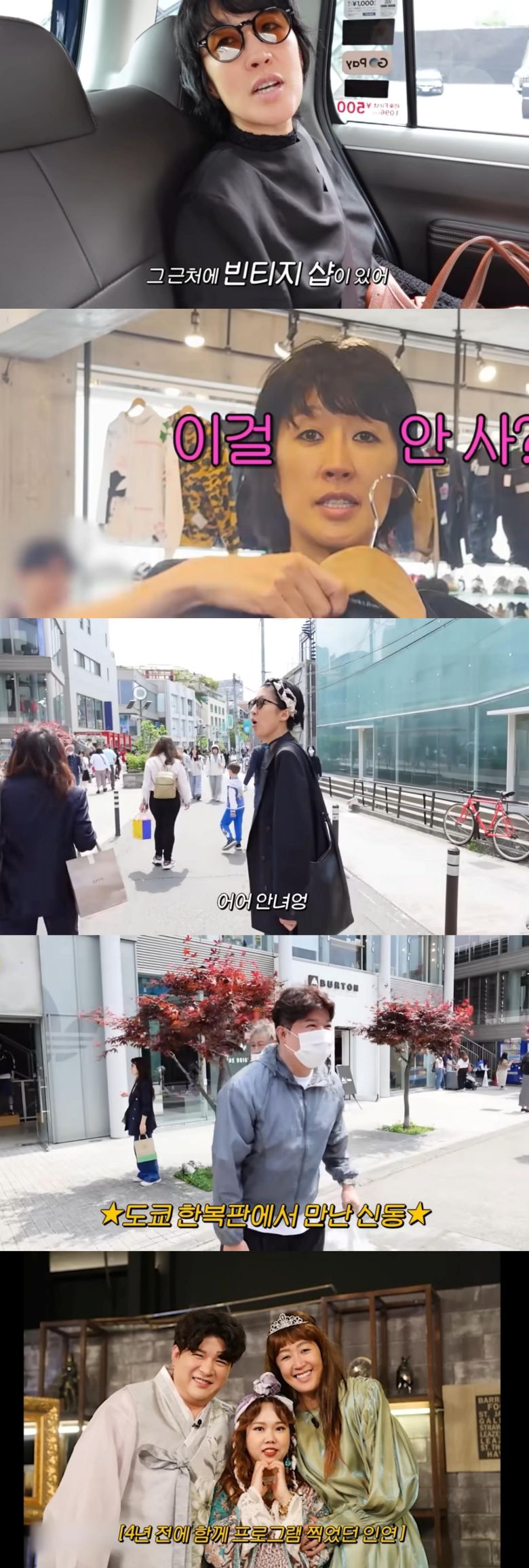 영상에는 홍진경의 일본 여행이 담겼고, 홍진경은 식사 후 평소 애용하는 하라주쿠 역 쪽에 위치한 빈티지 숍으로 향했다.