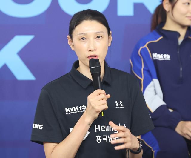 김연경이 16일 인천삼산월드체육관 보조경기장에서 열린 ‘KYK 인비테이셔널 2025’ 미디어데이에서 소감을 밝히고 있다. 뉴시스 |
