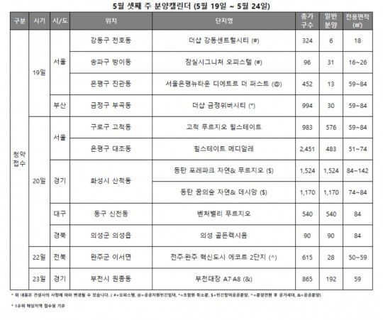 5월 셋째 주 분양캘린더 / 자료제공=리얼투데이 |