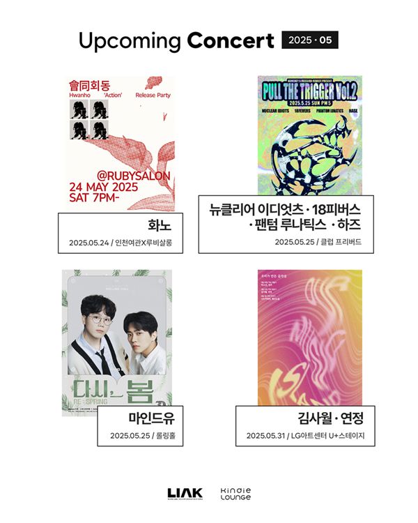 한편, 킨디라운지를 운영 중인 한국음악레이블산업협회는 소규모 대중음악 공연 지원사업 ‘2025 라라라온’의 참여 공연장과 뮤지션을 모집 중이다. 참가를 희망하는 공연장 및 뮤지션은 오는 18일 오후 6시까지 신청서를 작성해 관련 증빙자료와 함께 이메일로 제출하면 된다.