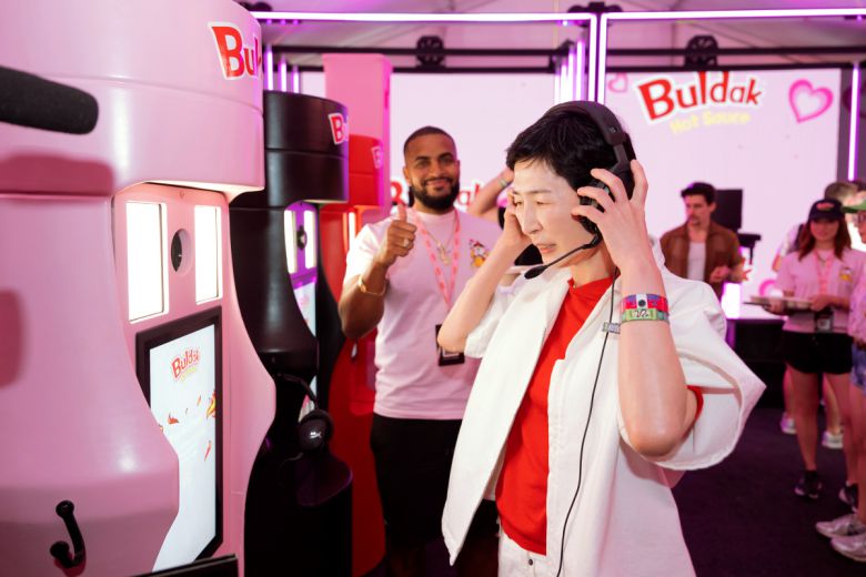 김정수 삼양식품 부회장이 미국 코첼라 페스티벌 불닭부스 내부에서 체험을 하고 있따. |