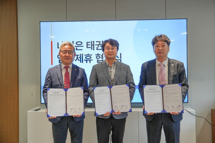 협약식에는 춘천레저태권도조직위원회 이상민 부위원장, 대한태권도협회 정문용 사무총장, SBS미디어넷 임정민 스포츠본부 국장이 참석했다.