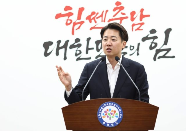 이준석 개혁신당 대선 후보가 16일 충청남도청에서 진행된 언론인과의 간담회에서 발언하고 있다. [사진=연합뉴스] |