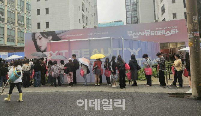 서울 성수동 무신사 스퀘어 성수4에서 열린 ‘무신사 뷰티 페스타’ 입구에 긴 대기줄이 이어져 있다. (사진=김정유 기자)