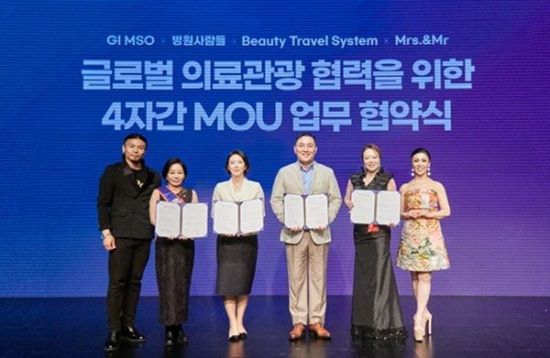 병원경영지원 기업 '지아이엠에스오(GIMSO)'는 일본 의료관광 시장 확대를 위해 의료 인력 파견 전문기업 '병원사람들', 일본 내 여행 연계 업체 'Beauty Travel System', 일본미인대회 주관사 'Mrs&Mr of the Year 2025'와 4자 간 글로벌 업무협약(MOU)을 맺었다고 밝혔다.