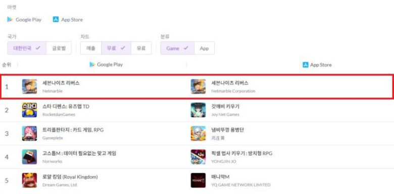 양대마켓 1위에 오른 세븐나이츠 리버스 |