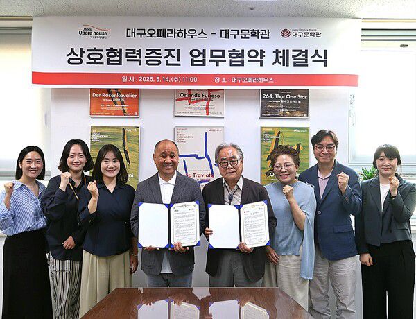 이번 협약식에는 정갑균 대구오페라하우스 관장과 하청호 대구문학관 관장 외 각 기관의 실무자들이 참석해 문학과 오페라를 통한 지역 문화예술 발전을 위한 상호 협력하는 방안을 공유하고, 다양한 문화예술 콘텐츠의 발굴과 교류를 추진하는 데 뜻을 모았다.