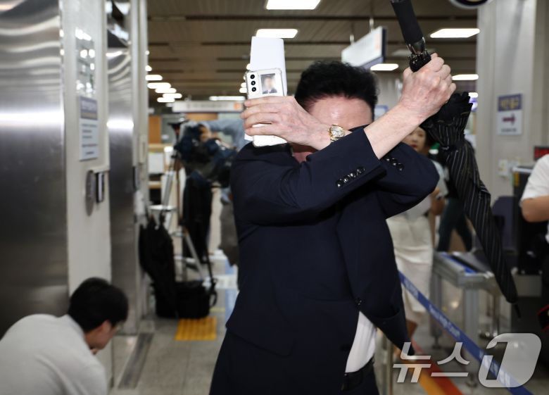 도이치모터스 주가조작 사건에서 '전주'(錢主) 역할을 한 혐의를 받고 있는 손 모씨가 12일 오후 서울 서초구 서울고등법원에서 열린 도이치모터스 주가조작 관련 항소심 선고공판에서 징역 6개월에 집행유예 1년을 선고 받은 뒤 취재진을 피해 법원을 나서고 있다. 2024.9.12/뉴스1 ⓒ News1 구윤성 기자