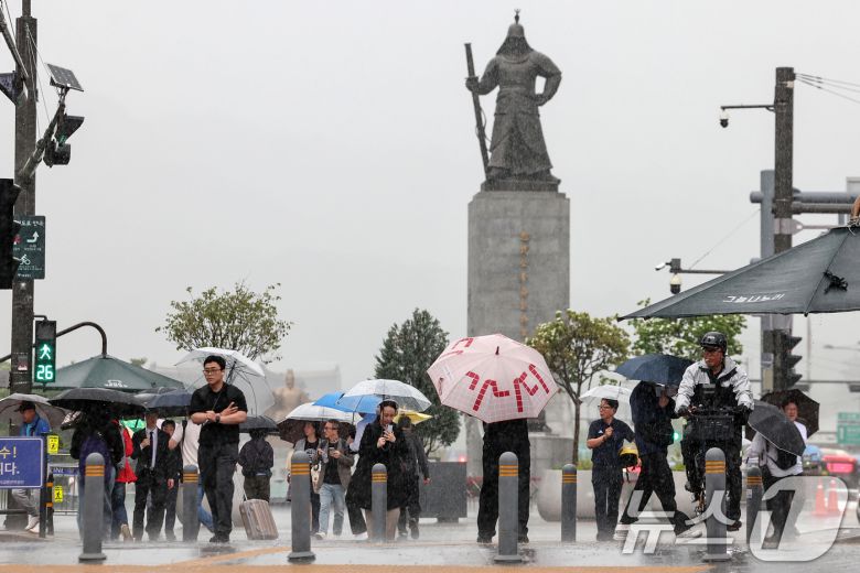 전국 곳곳에 비가 내린 16일 오후 서울 종로구 광화문네거리에서 우산을 쓴 시민들이 퇴근길 발걸음을 재촉하고 있다. 2025.5.16/뉴스1 ⓒ News1 민경석 기자 |
