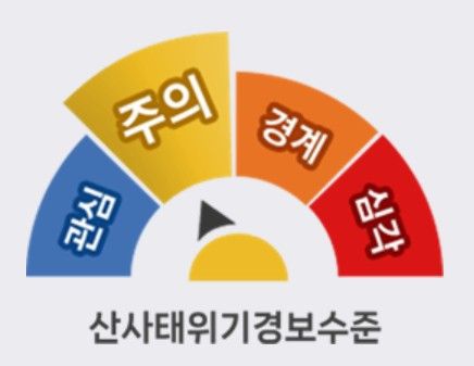 산사태 위기경보는 위험수위에 따라 ‘관심’→‘주의’→‘경계’→‘심각’ 단계가 발령된다.