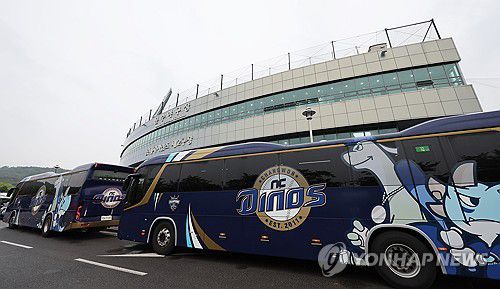 NC 임시 홈구장으로 사용되는 문수야구장(울산=연합뉴스) 김용태 기자 = 프로야구 NC 다이노스의 임시 홈구장으로 사용되는 울산 문수야구장 앞에 16일 NC 구단 버스가 서 있다. 2025.5.16 yongtae@yna.co.kr