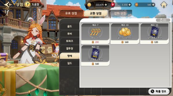 하루 한 번 '명예 포인트'를 주고받을 수 있는 친구는 최대 30명까지 등록 가능하다. 해당 포인트로 명예 상점에서 열쇠, 골드, 일반 및 고급 영웅 소환권을 구매할 수 있다. 특히 열쇠는 스토리와 던전 입장에 필요한 핵심 자원이기 때문에 안정적인 수급 경로 확보가 중요하다.
