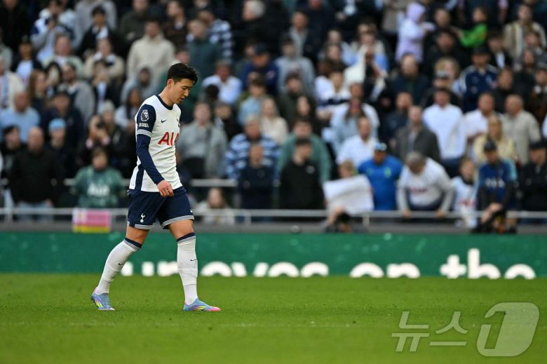 토트넘의 손흥민이 6일(현지시간) 영국 런던의 토트넘 홋스퍼 스타디움에서 열린 EPL 사우샘프턴과 경기 중 윌슨 오도베르와 교체돼 그라운드를 떠나고 있다. 2025.04.07 ⓒ AFP=뉴스1 ⓒ News1 우동명 기자