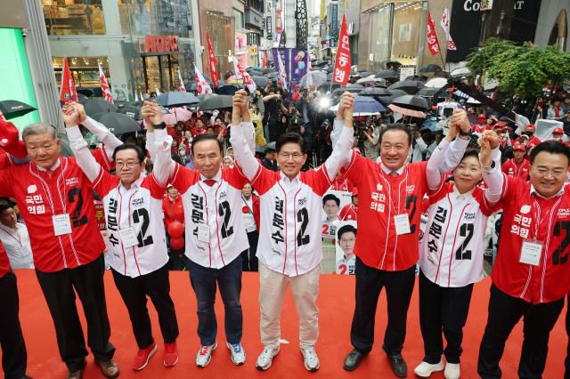 김문수 국민의힘 대선 후보가 16일 충북 청주시 올리브영 청주타운 앞에서 집중 유세를 하고 있다. [사진=연합뉴스]