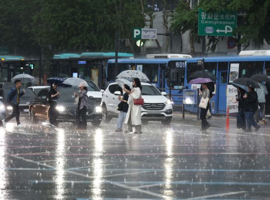 서울과 경기북부, 전남 남해안·동부내륙, 경남 남해안·남서내륙, 제주(북부 제외)에 밤까지 시간당 20~40㎜씩 집중호우가 쏟아질 수 있으니 경각심을 유지해야 한다.