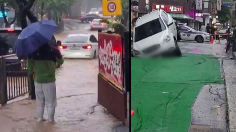 하수관 공사를 하면서 임시로 흙을 메워놨는데, 갑작스러운 폭우에 토사가 쓸려나간 겁니다.
