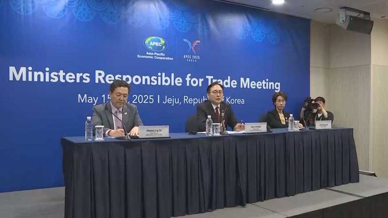제주에서 열린 아시아태평양경제협력체, APEC 통상장관회의에서 21개 회원국들이 만장일치로 공동성명을 채택했습니다.