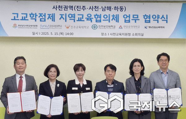 (진주=국제뉴스) 구정욱 기자 = 경상국립대는 2025년 고교학점제 전면 시행에 따라 지역 내 학교 간 교육과정 공동 운영과 전문 교원 인력풀 구성 등 협력 체계를 구축하기 위해 '사천권역(진주·사천·남해·하동) 고교학점제 지역교육협의체' 업무협약을 체결했다.