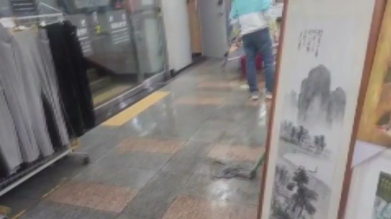 오늘(16일) 오후 4시 20분쯤 서울 명동 지하상가 모습인데, 상인들은 대걸레로 젖은 바닥을 닦아내느라 여념이 없습니다.